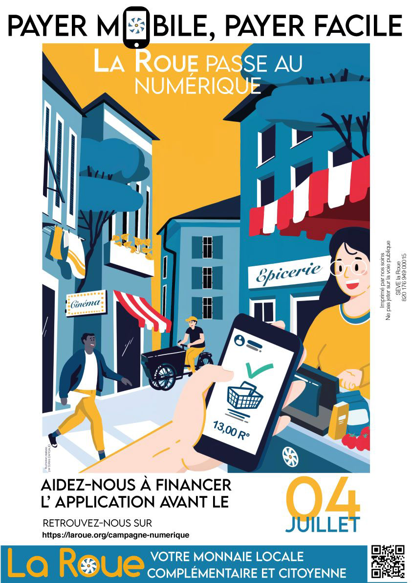 Réalisation d'une illustration pour l'affiche de la campagne de financement participatif de La Roue, Monnaie Locale Complémentaire Citoyenne, Provence - Alpes du Sud