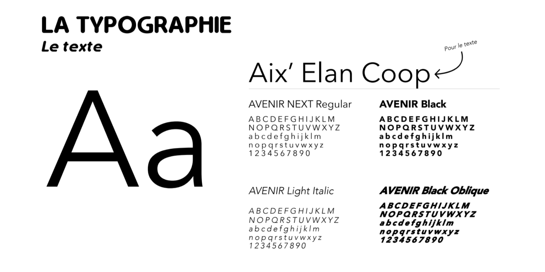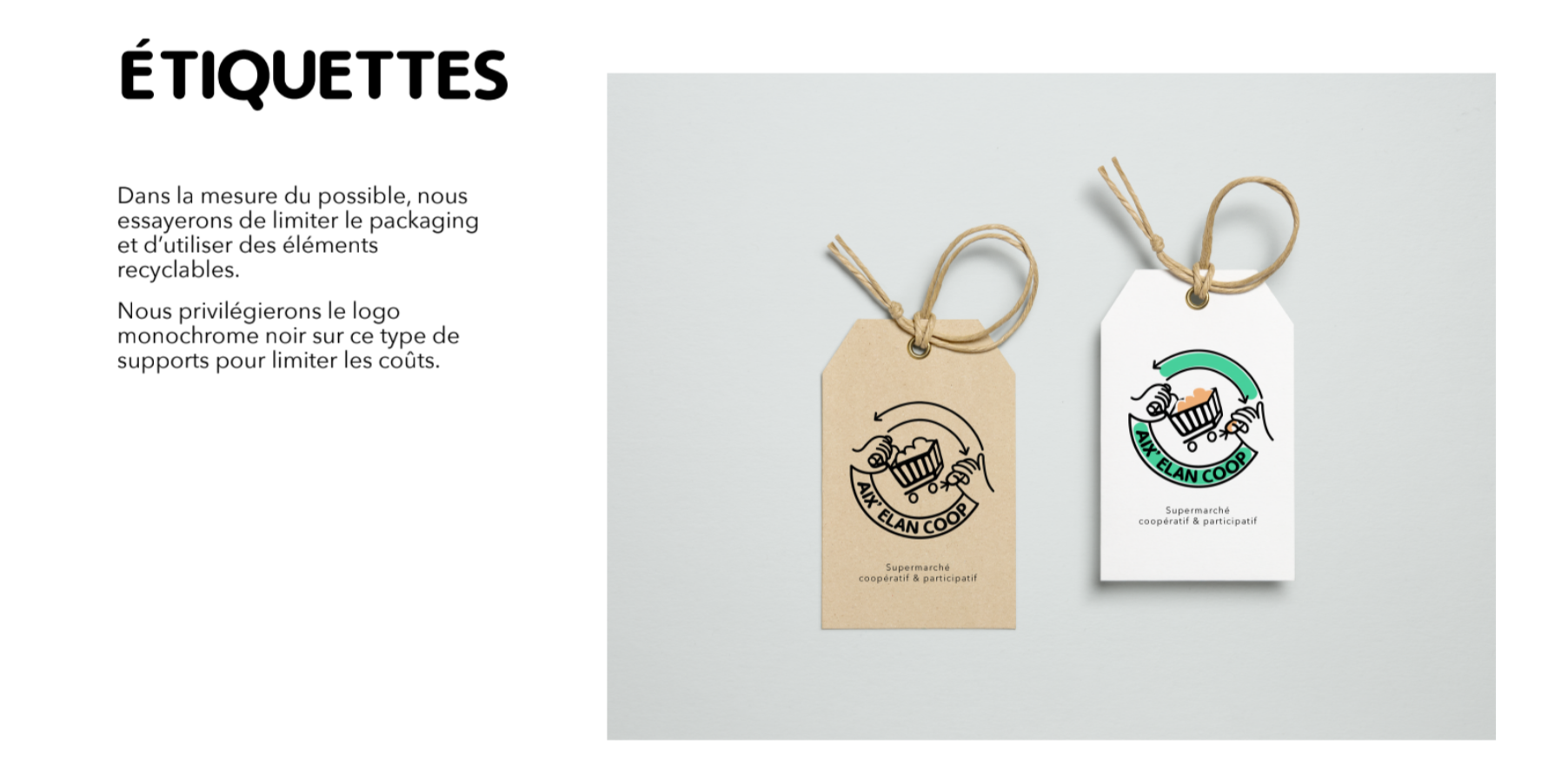 Réalisation de la charte graphique de l'association Aix' Elan Coop, supermarché coopératif et participatif en création à Aix-en-Provence.