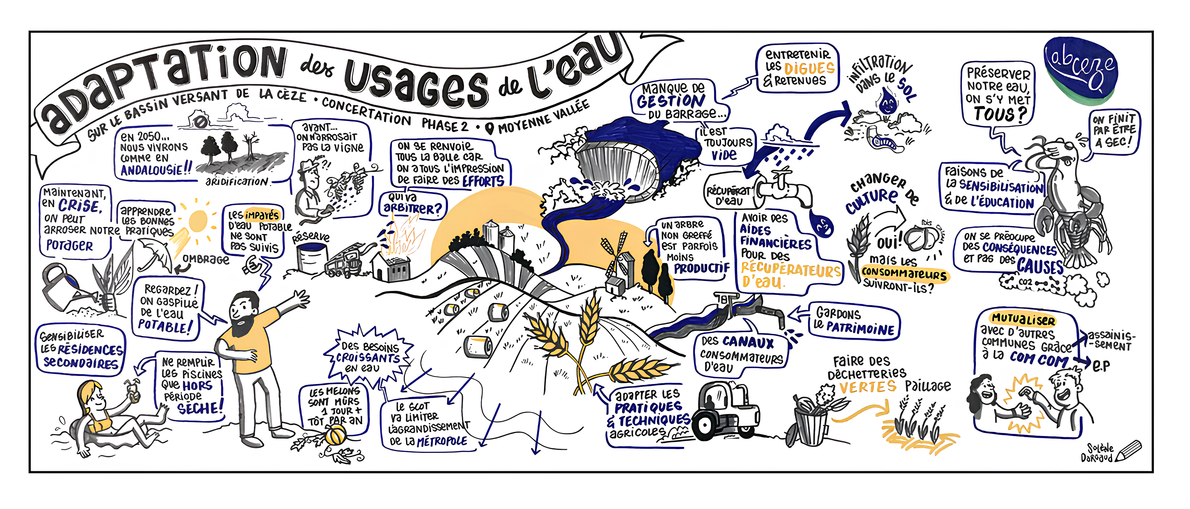 Nous avons organisé une concertation avec les usagers de l'eau de la rivière Cèze (agriculteurs, viticulteurs, acteurs du tourisme, élus locaux, etc.) pour évaluer la situation actuelle, identifier les solutions déjà mises en place et se projeter avec eux dans le futur.