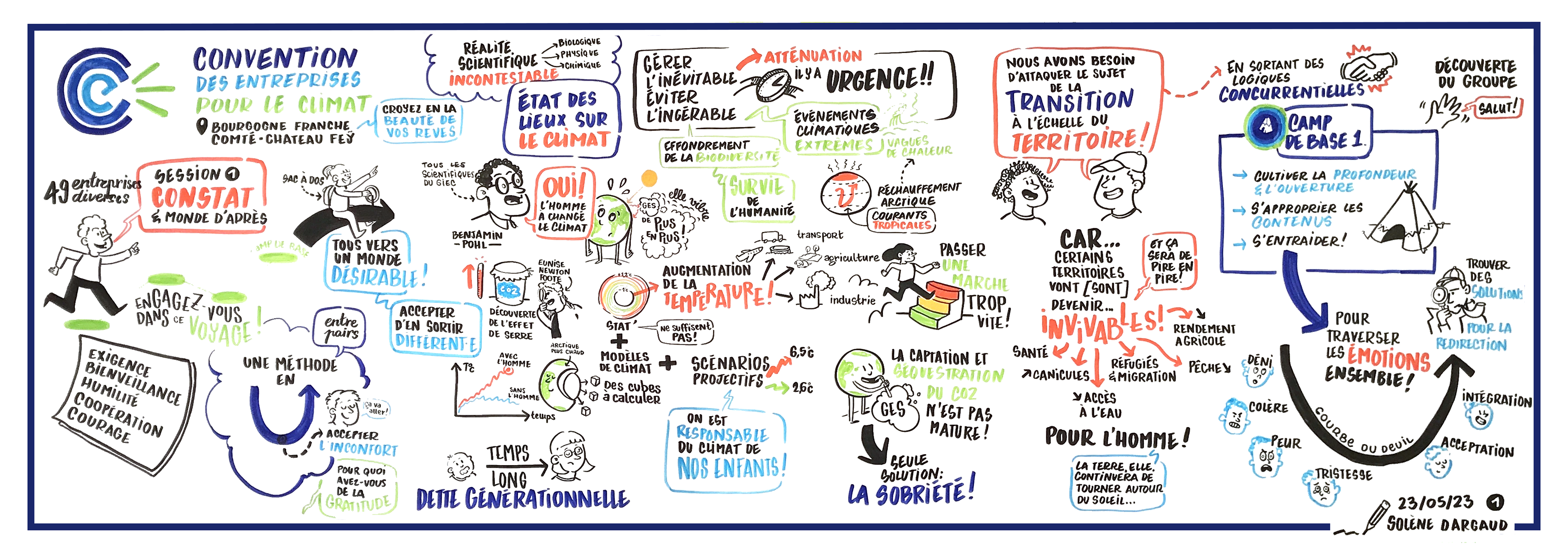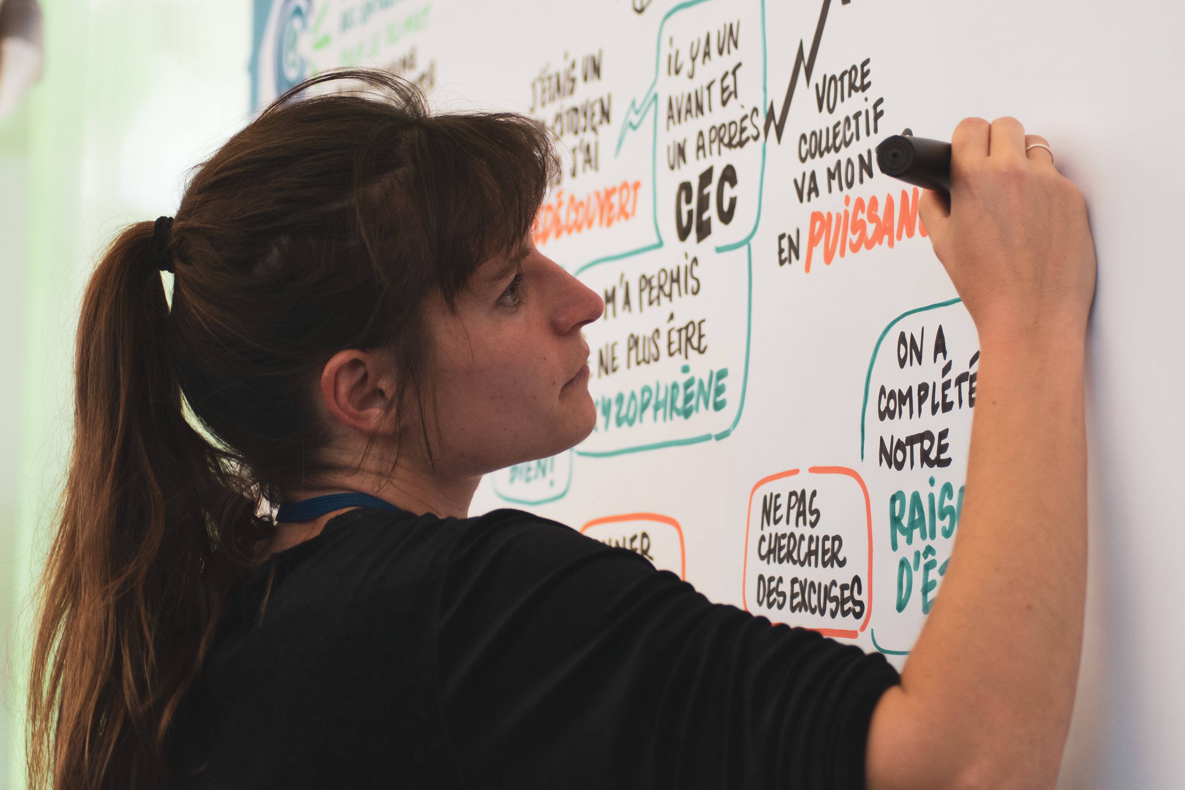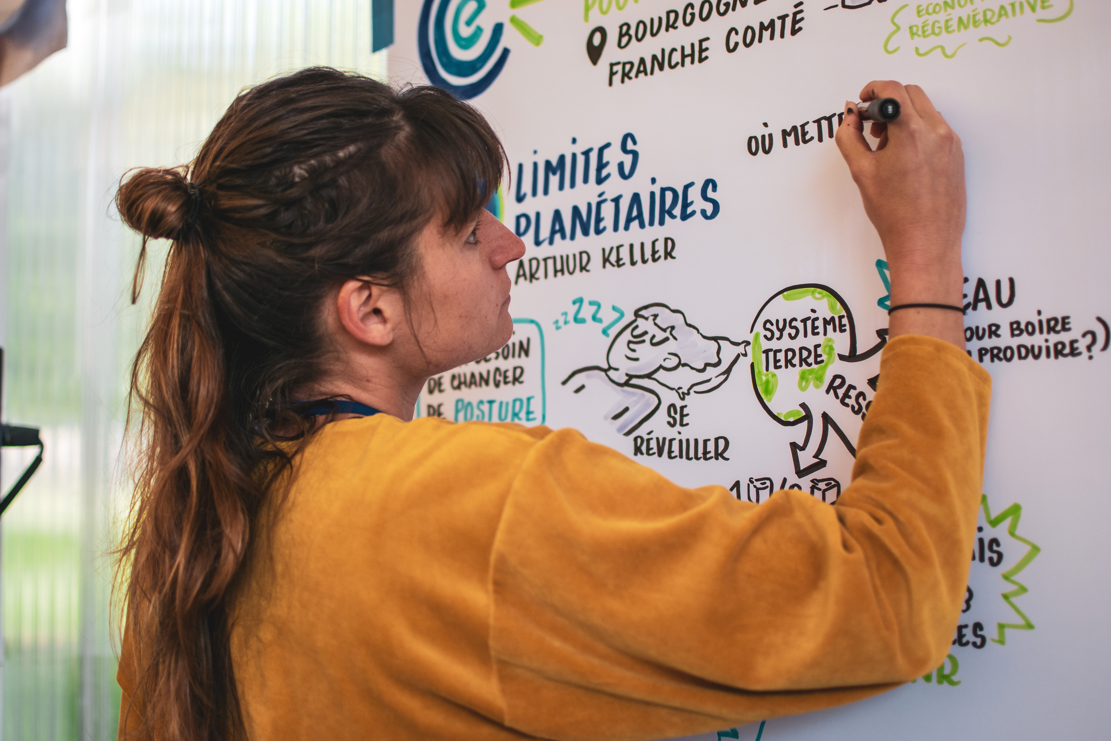 Mon rôle a été de soutenir les conférences et le processus d'intelligence collective mené par les COFA grâce à la facilitation graphique.