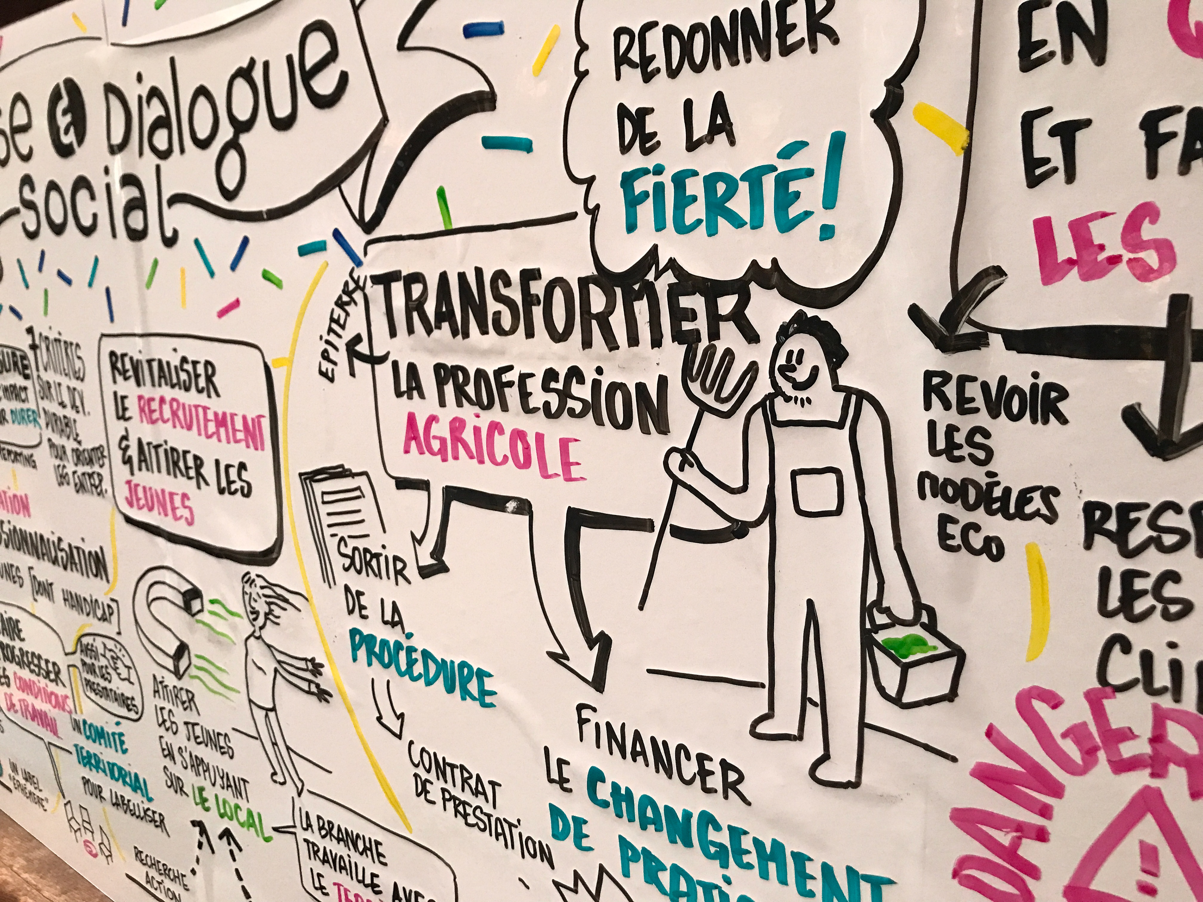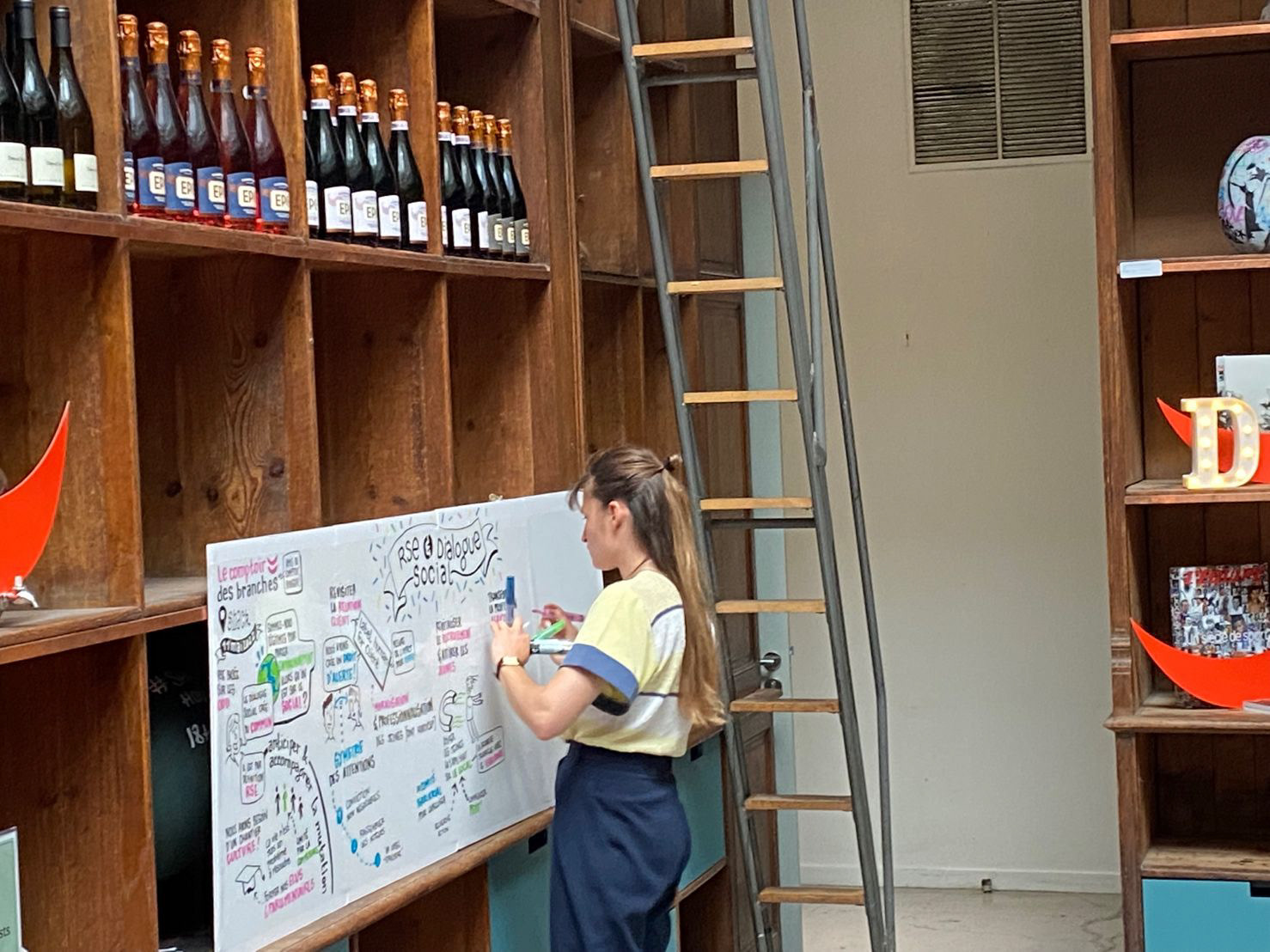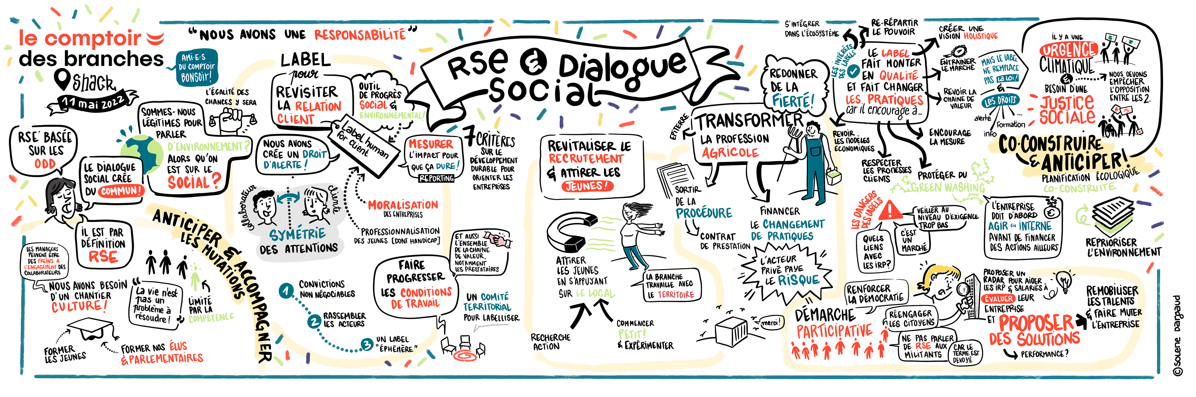 Facilitation graphique des débats sur le rôle du dialogue social dans la transition environnementale et sociale organisés par le #ComptoirDesBranches de Malakoff Humanis au Le Shack