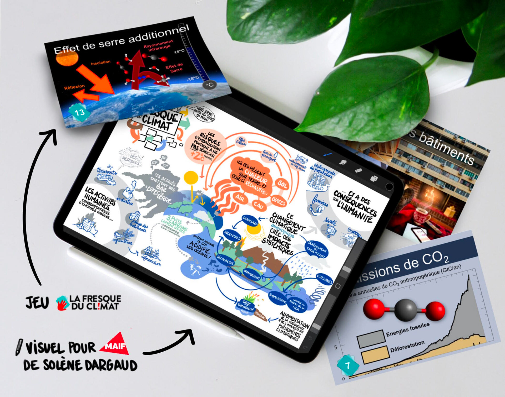 ✏️ Synthétiser visuellement les enjeux systémiques du changement climatique pour renforcer la mémorisation et l'engagement suite à La Fresque du Climat : voici l'exercice réalisé pour les équipes de Marketing et Design de la MAIF.