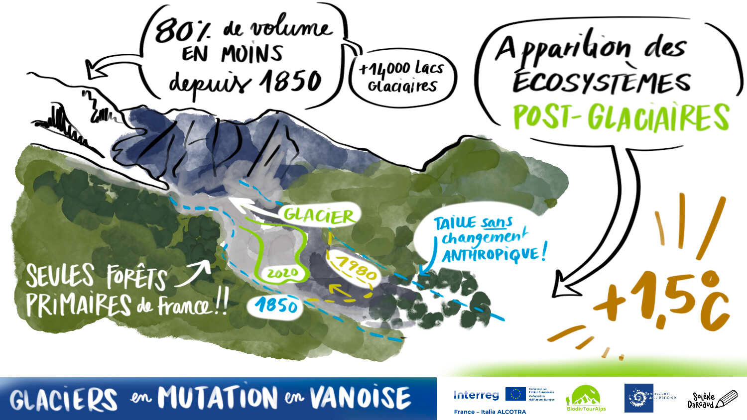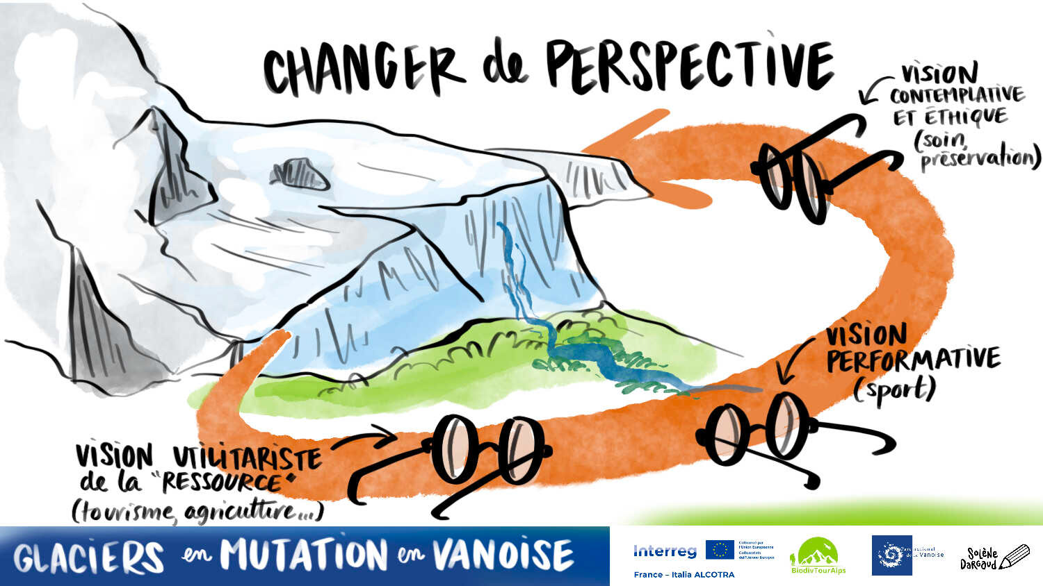 Synthèse dessinée de la journée du Parc de la Vanoise dédiée aux acteurs du tourisme et de la montagne
