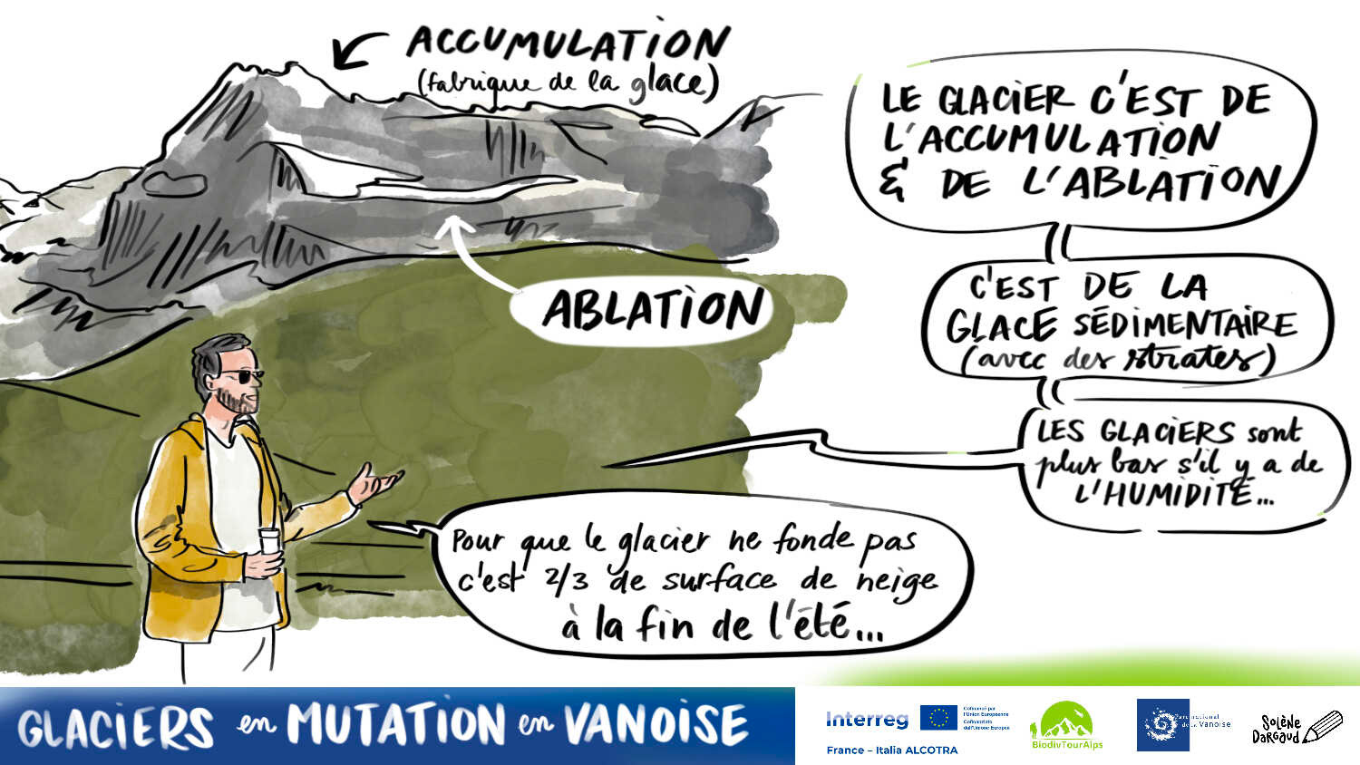 Synthèse dessinée de la journée du Parc de la Vanoise dédiée aux acteurs du tourisme et de la montagne du 3 juillet 2025.